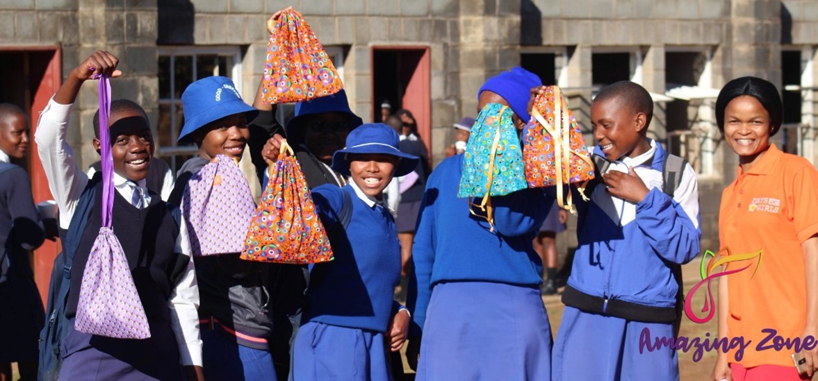 De setjes worden geproduceerd in Lesotho door Amazing Zone. Dat is onze partnerorganisatie in Lesotho. De vrouwen van Amazing Zone zijn getraind om de menstruatie kits te maken en hebben de naaimachines gekregen van de moederorganisatie Days for Girls, die in verschillende landen dit soort initiatieven stimuleert. Ook het voorlichtingsmateriaal van Days for Girls wordt gebruikt.